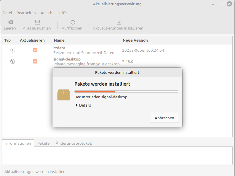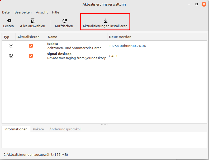 In diesem Beispiel steht ein Update für das Betriebssystem sowie eins für eine Anwendung (Signal) zur Verfügung: