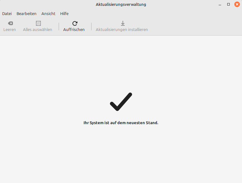 Per einfachem Klick auf das Symbol öffnet sich die 'Aktualisierungsverwaltung'. Dort ist zunächst zu sehen, welche Aktualisierungen zur Verfügung stehen.