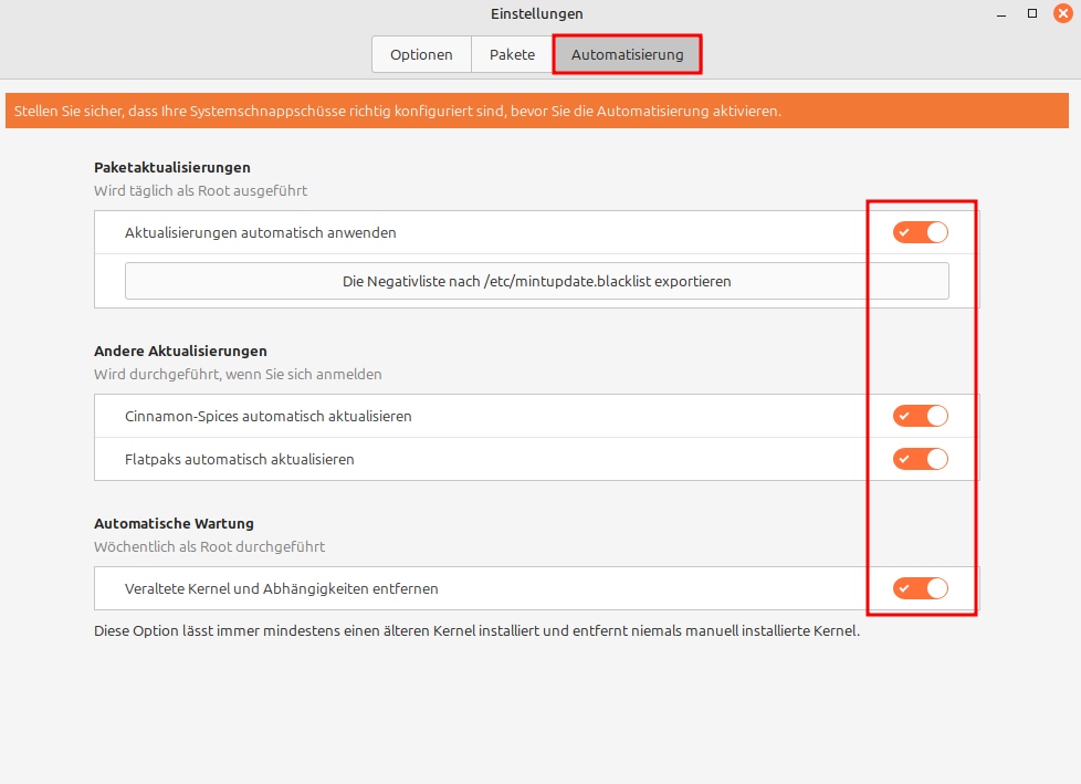 Einstellen der automatischen Aktualisierung von Linux Mint