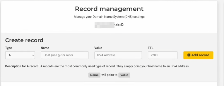 Pflegen DNS-Eintrag zur Subdomain bei Hetzner