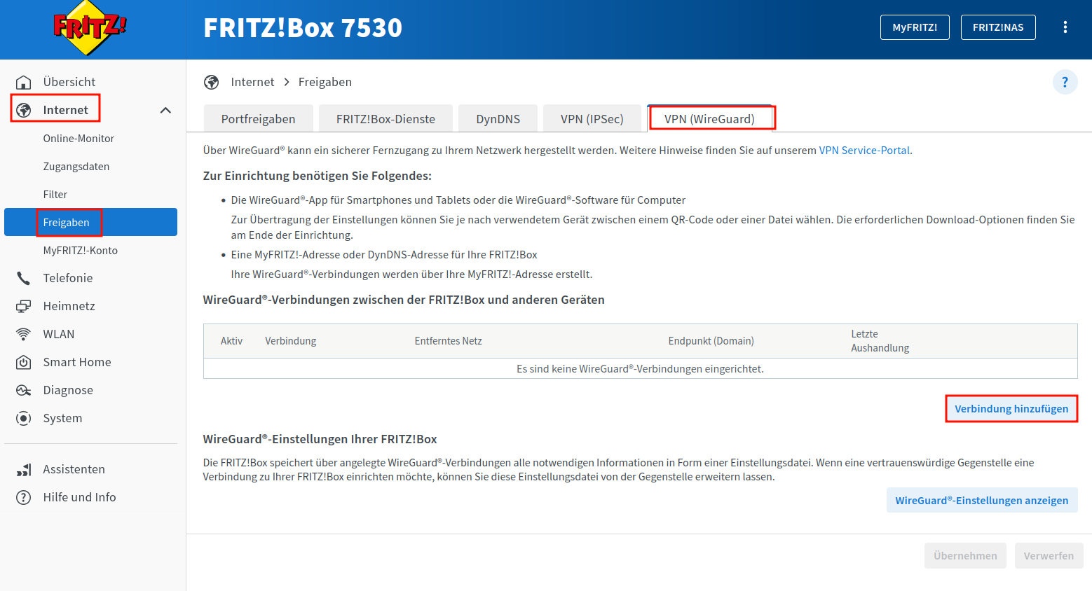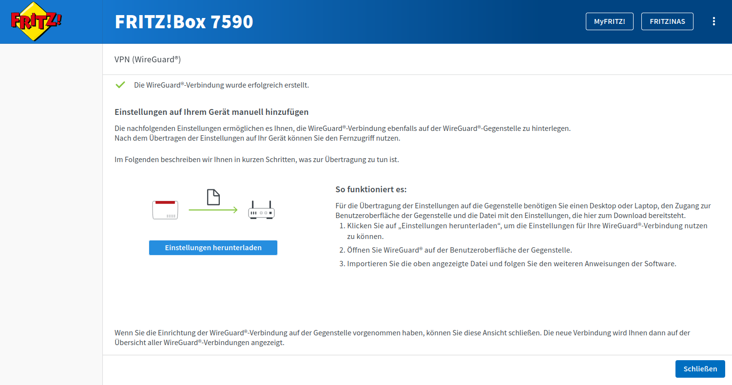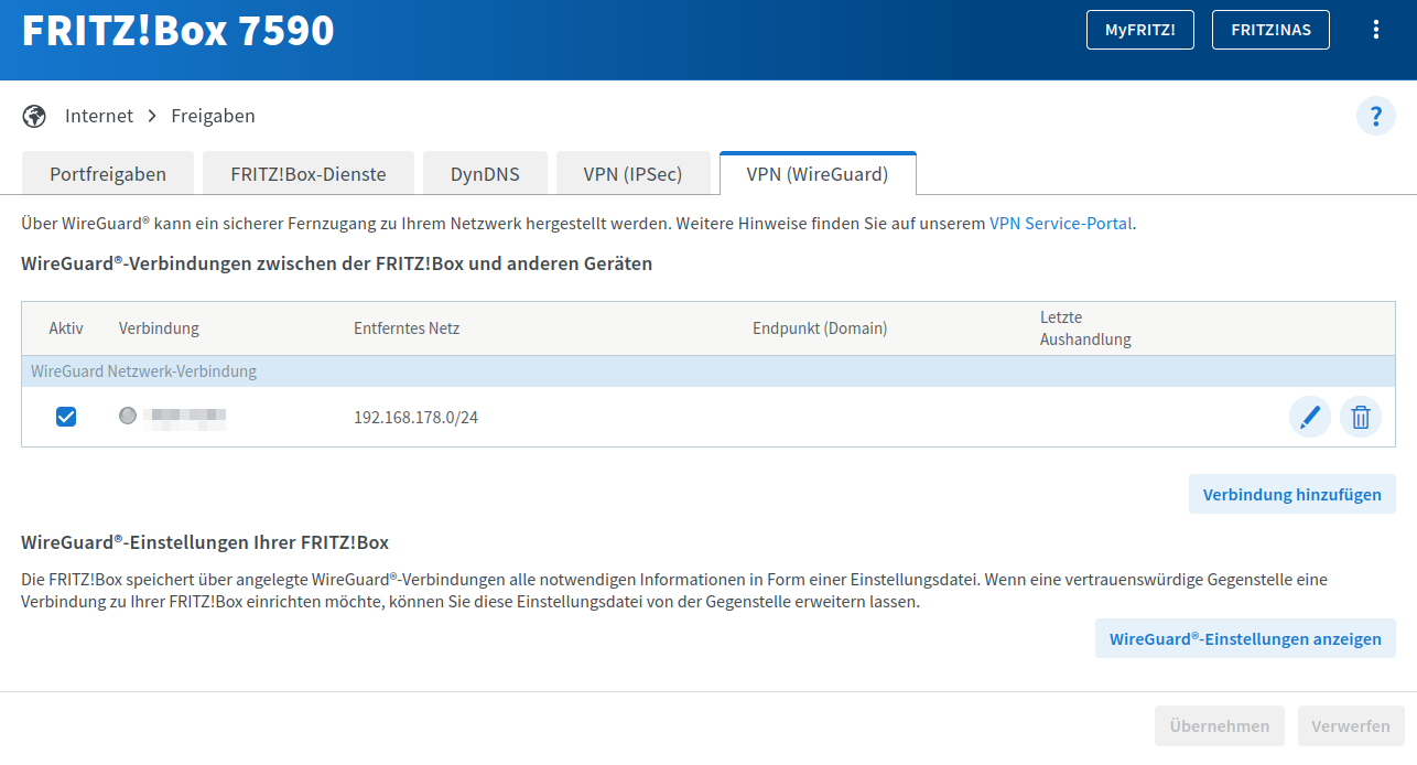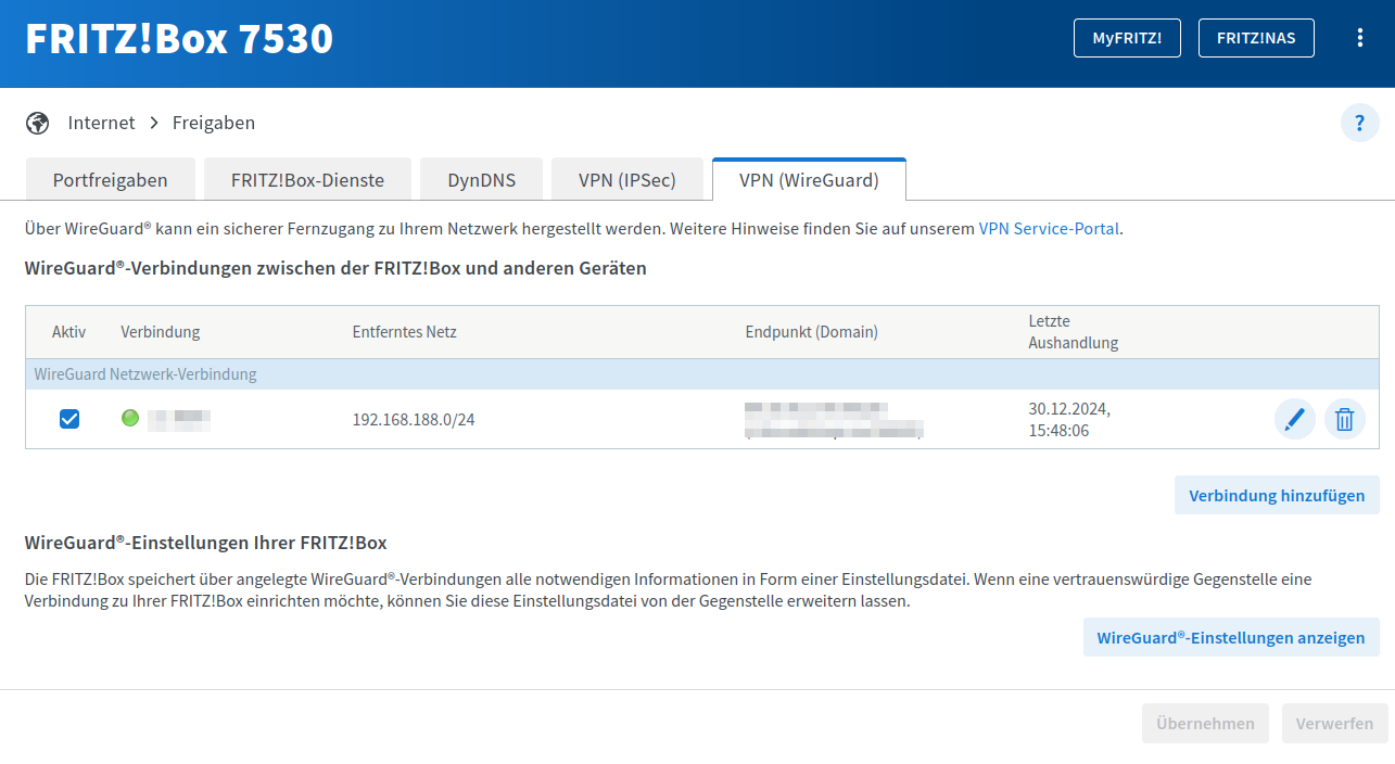 Fritzbox-Router haben ab einem bestimmten Versionsstand die Möglichkeit, eine VPN-Verbindung per Wireguard herzustellen, um auf andere Netzwerke zugreifen zu können.