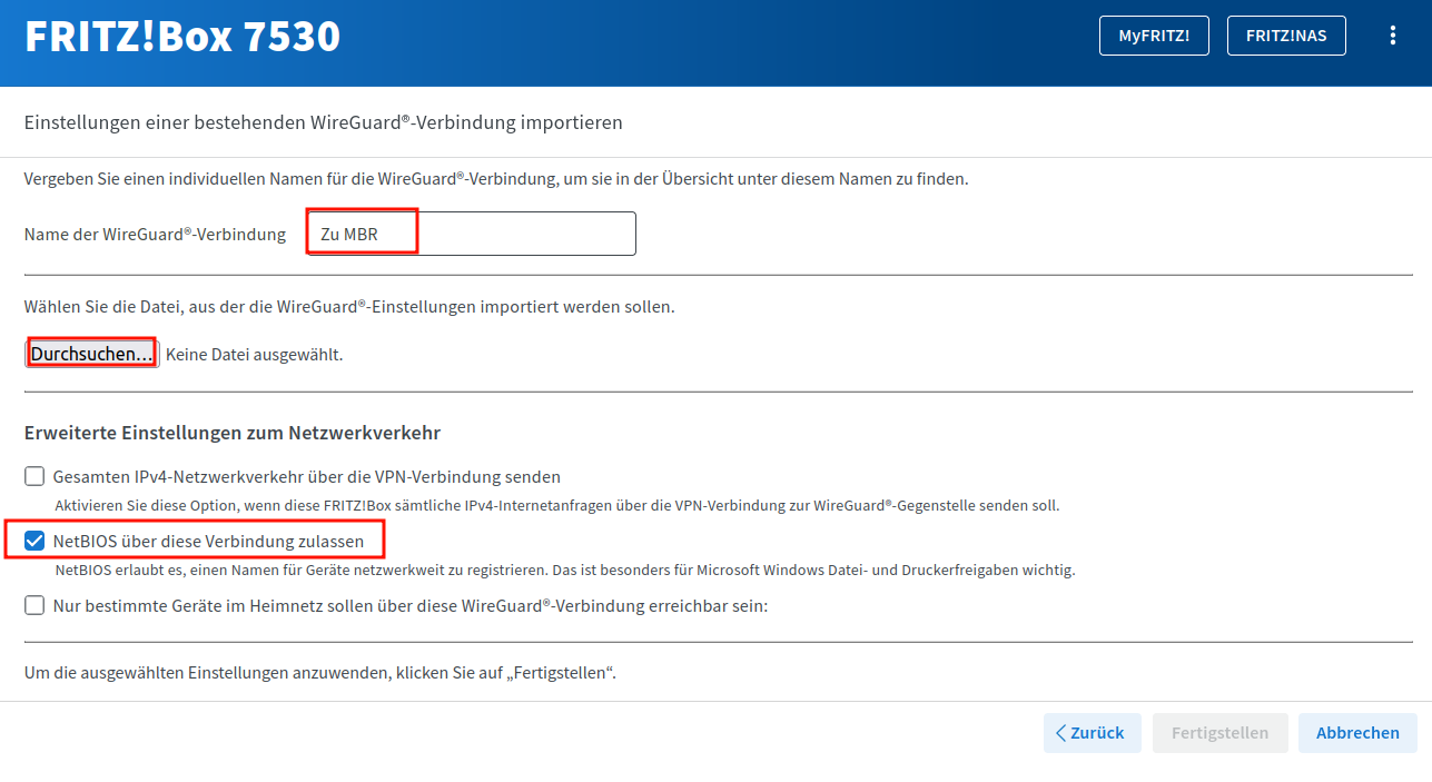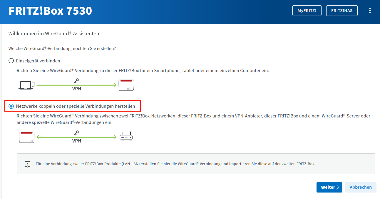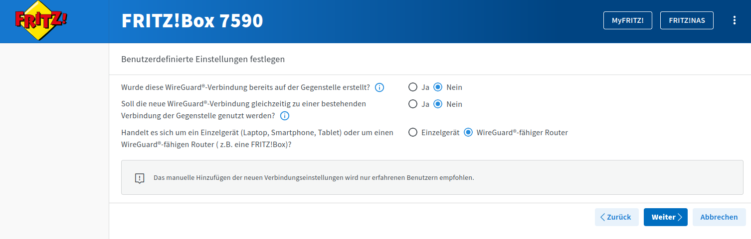 - Soll die neue WireGuard-Verbindung gleichzeitig zu einer bestehenden Verbindung der Gegenseite genutzt werden?