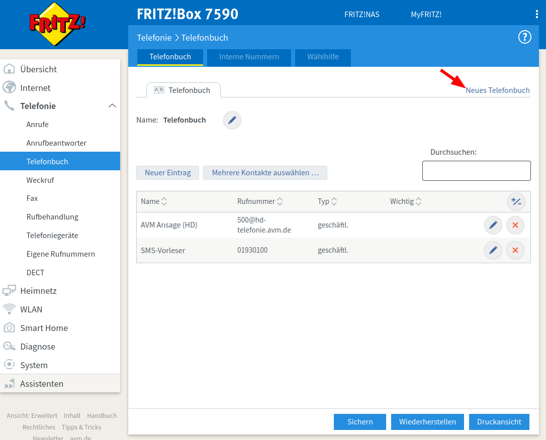 Prüfen ob das Telefonbuch angelegt wurde
