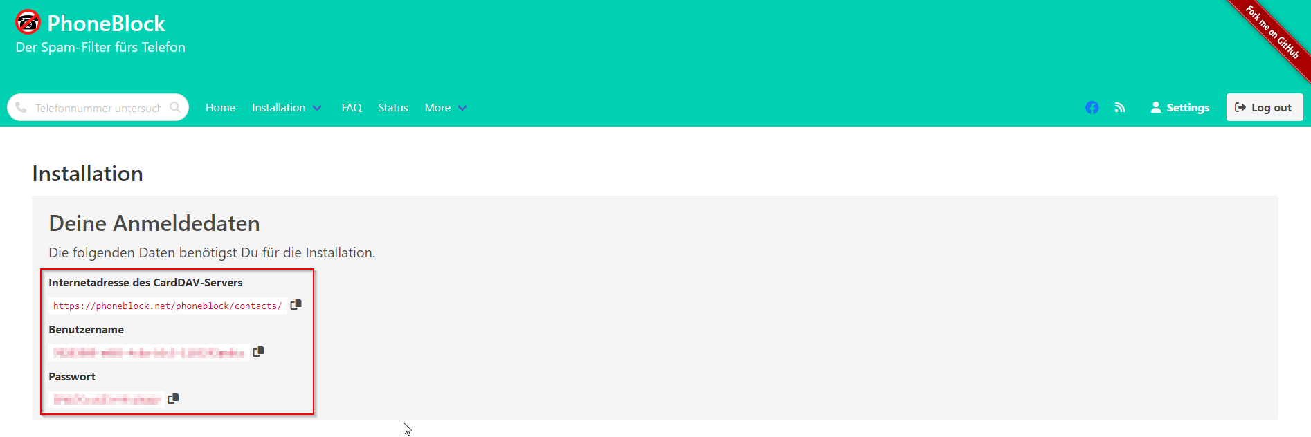 Jetzt benötigst Du die Anmelde-Daten Deines PhoneBlock-Accounts.
