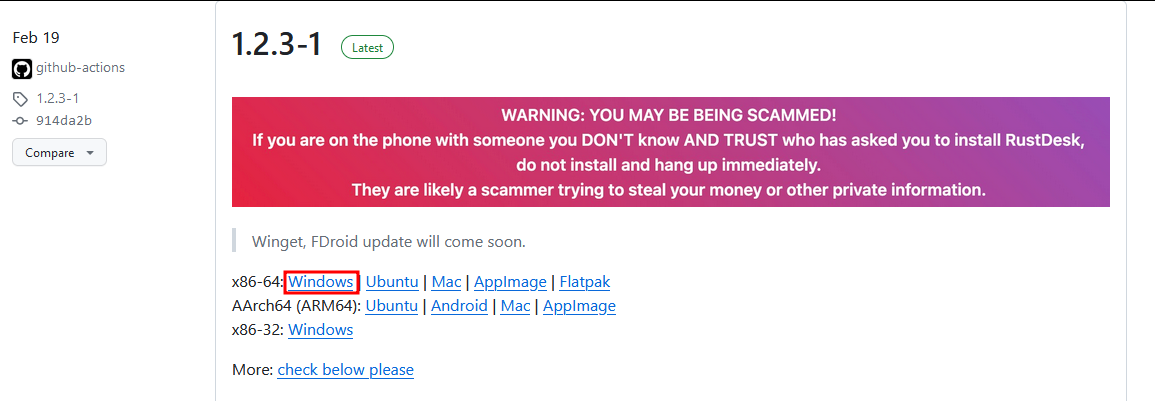 - Windows (64 Bit): https://github.com/rustdesk/rustdesk/releases/download/1.2.3-1/rustdesk-1.2.3-1-x86_64.exe