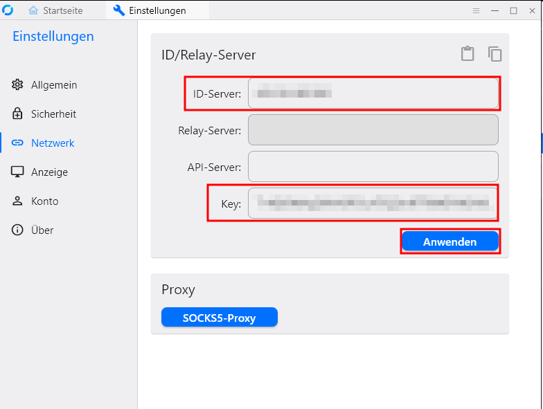 Einrichten einer Verbindung zu einem anderen Rustdesk-Server